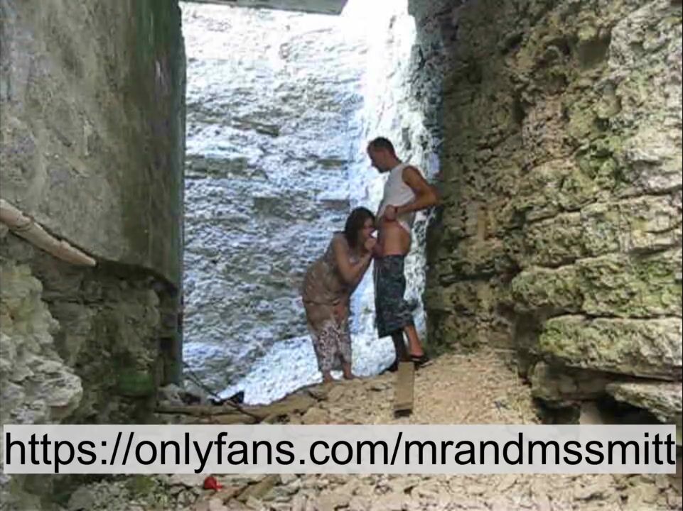 Russian brunette publicly fucked a stranger on a tour of the fortress